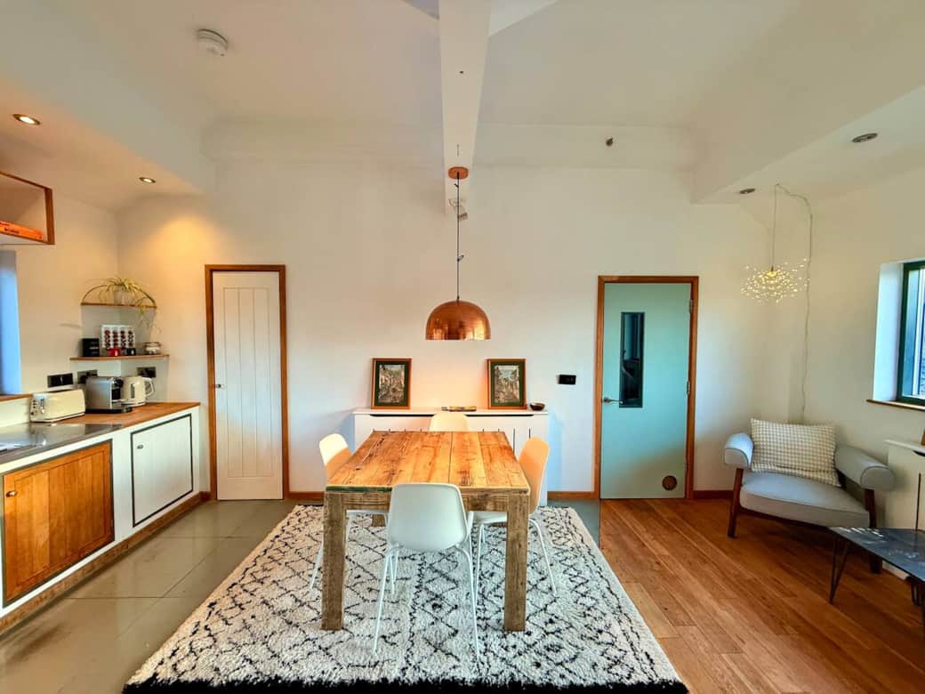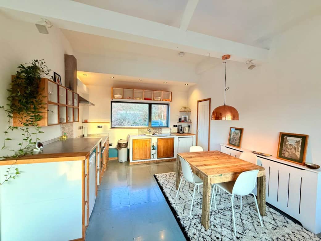 This unique 2 bed apartment feels like you’re in the rural countryside, yet you’re a short drive from Bristol city centre, with all amenities nearby. The kitchen is fully equipped. The bathroom is a ‘wet’ room’ with funky lighting.