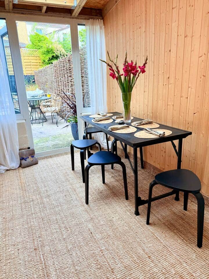 • Dining room – The dining table sits up to 6 guests and this space can also be used for yoga, stretch whilst you enjoy the garden view and sky window.Â